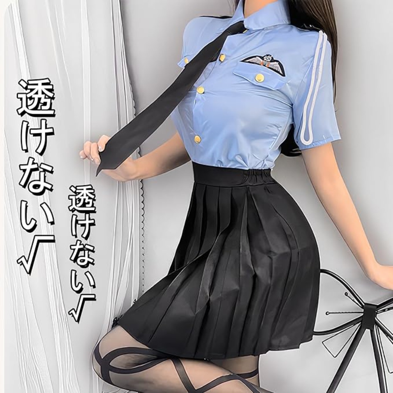 セット内容:半袖トップス、ミニスカート、ネクタイ、帽子、サングラス、ベルト、パンツのフルセットです。(サングラスや靴は付属しません。小物のデザインや色味は変更となる場合がございます) 定番の警察服のコスチュームセットで、下着はプリーツスカートに変え、青春に戻られるかわいい感をくれます!