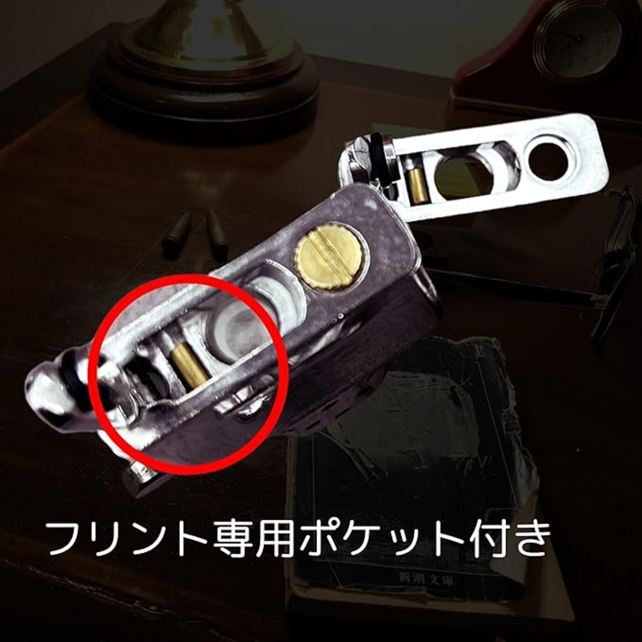更に、嬉しい石ポケット付きです。フェルトの下に交換用の石を保存するとオイルによる劣化が心配ですが、このインナーパーツはオイルリッドの内側にフリントストーンようのポケットが付いています。