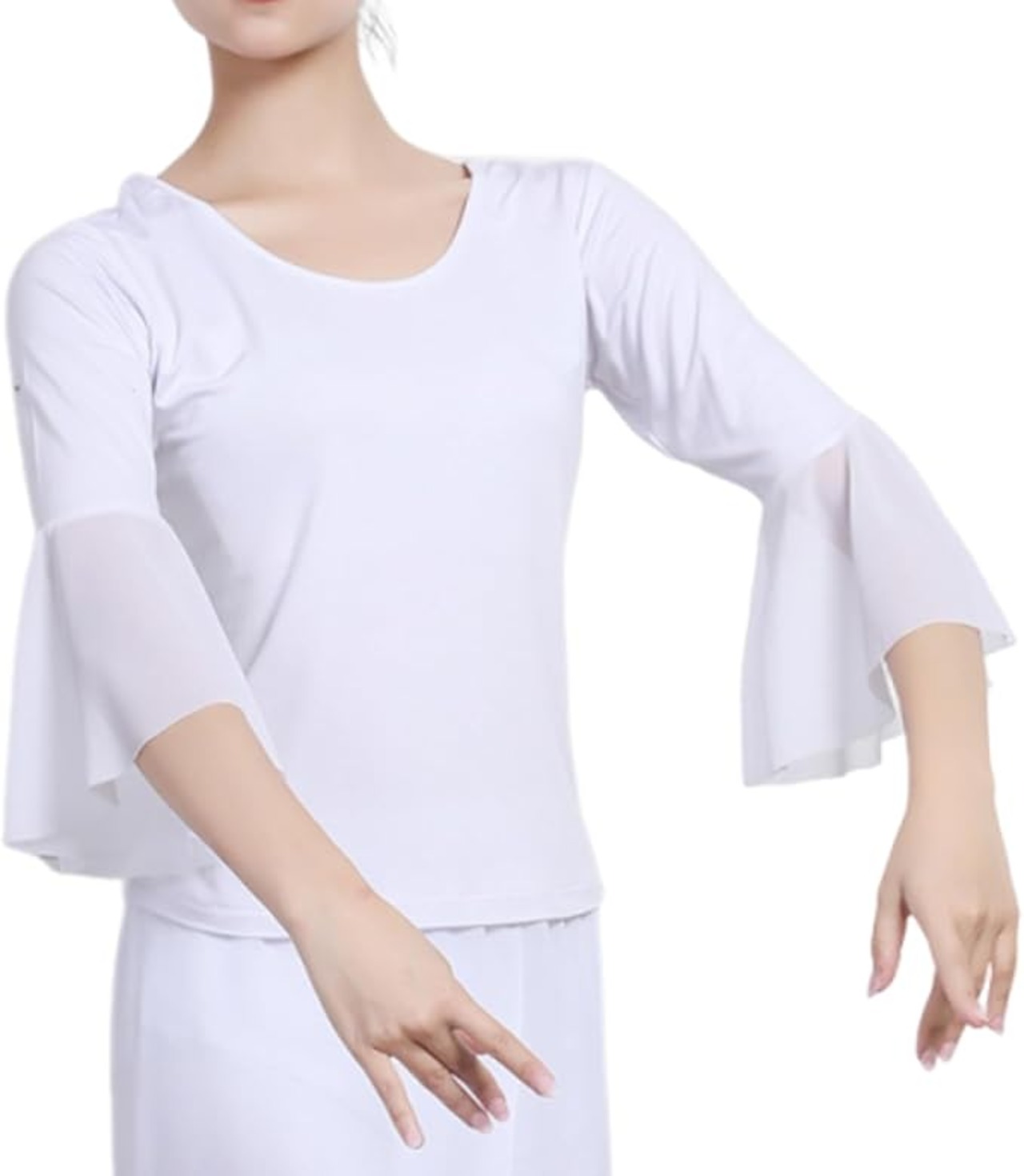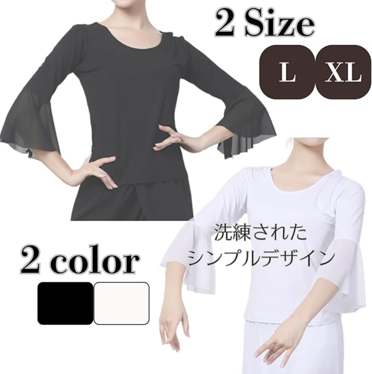 [Belle Iza Bella] ダンス 衣装 レディース トップス 社交ダンス モダンダンス 大人 ヨガ ウェア 練習着 無地 フレア 袖 薄手
