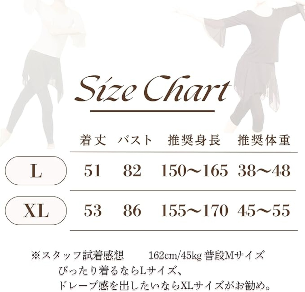Lサイズ:着丈51cm、胸囲 (平置き) 82cm、推奨身長150~165cm、推奨体重38~48kg