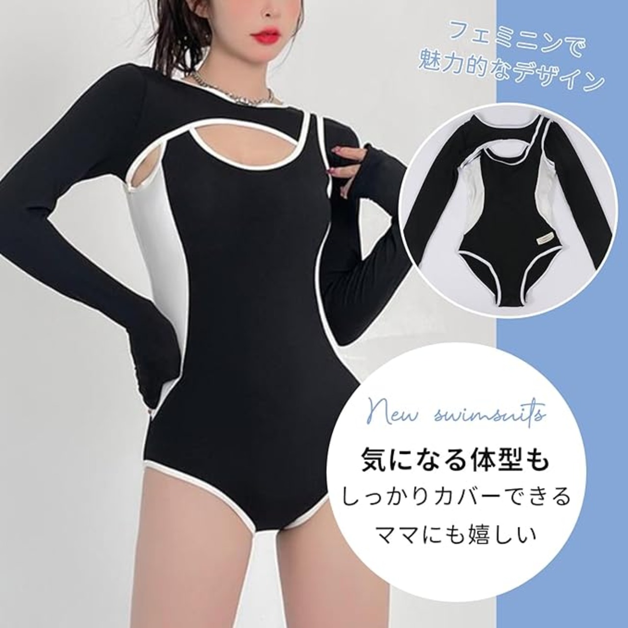 【体型カバーも叶える細見えシルエット】ウエストラインを美しく見せるギャザーやフレアデザイン、視線を上に引き上げる配色切り替えなど、スタイルアップを意識したディテールが満載。気になるお腹やヒップ周りを自然にカバーしつつ、女性らしいラインを強調する設計で、自信を持って着こなせます。ボディラインに悩みがある方でも安心して着用できる、見た目にも気持ちにも嬉しいシルエットデザインです。