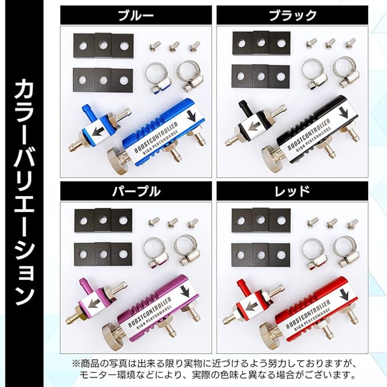 簡易的でお手軽にブースト圧を上げてパワーアップさせる為のアイテムです。 ブーストゲイン/燃調等のセッティングはこの装置で調整できませんのでご注意下さい。 ※ブースト圧の上げ過ぎは故障の原因となりますので、ブースト圧計との併用をオススメいたします。