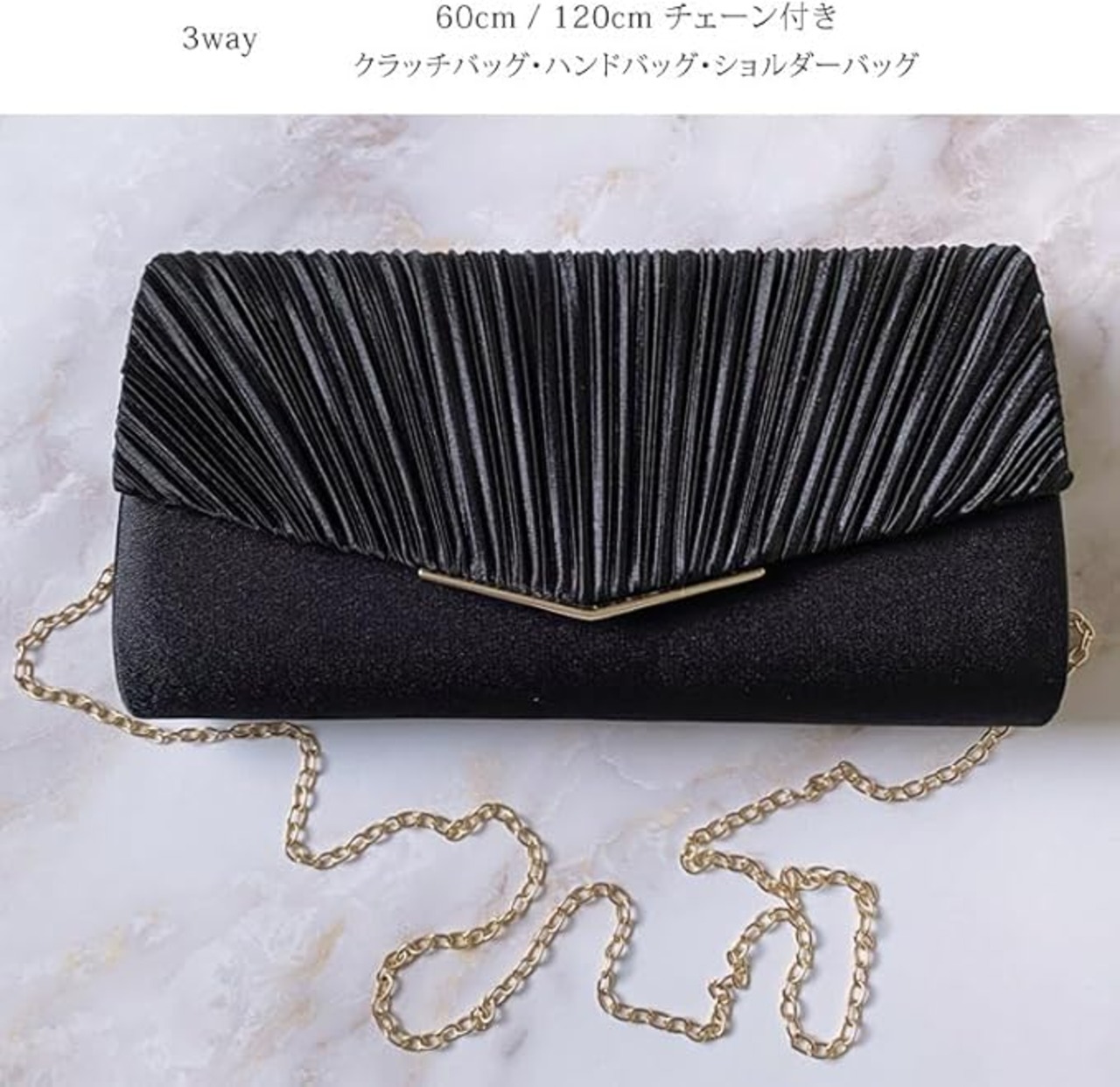 ショートチェーン・ロングチェーン付きでクラッチバッグやハンドバッグ、ショルダーバッグとしてもお使いいただけます