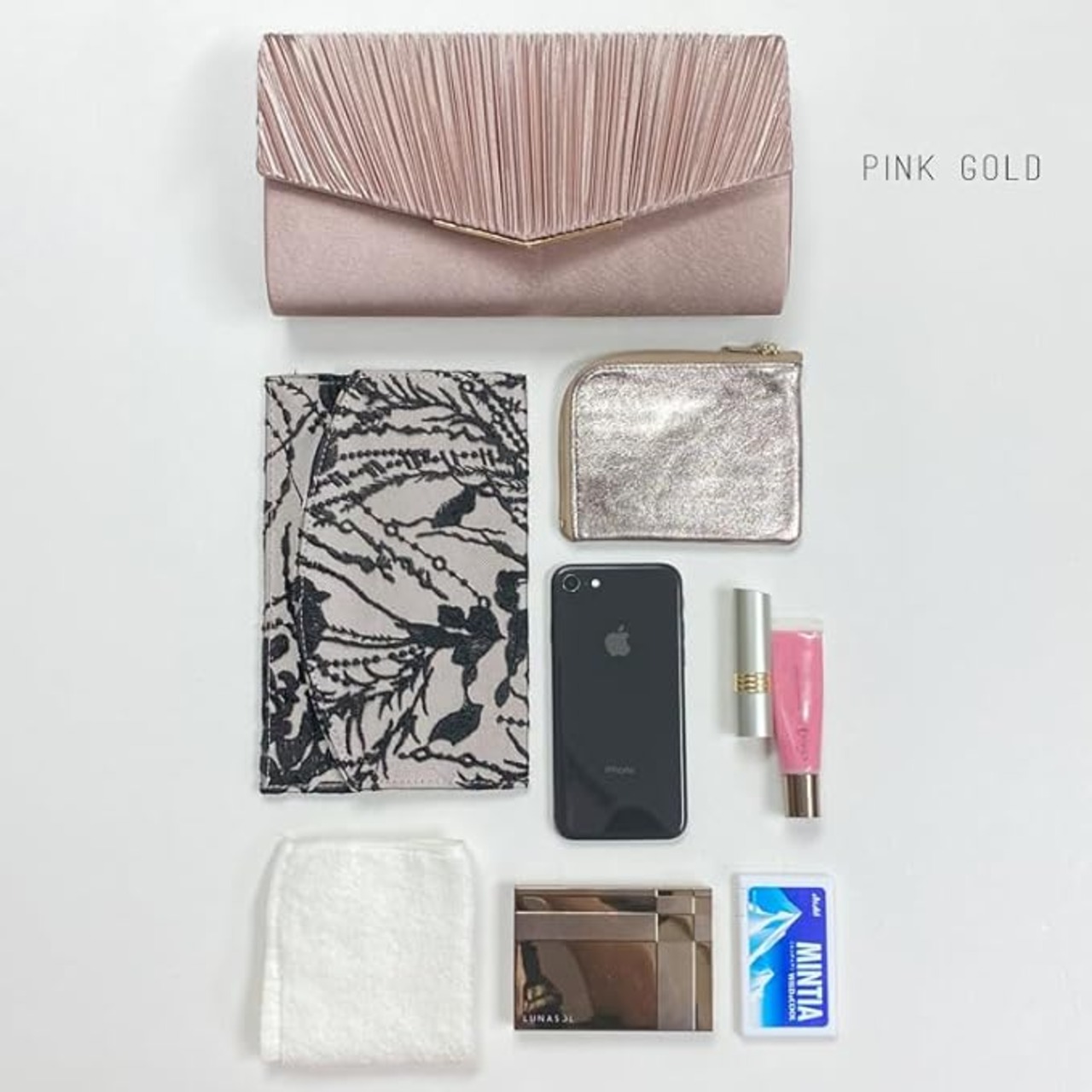 【収納量】ご祝儀袋、ミニ財布、ハンカチ、スマホ、お化粧品 etc 内ポケット1つ付き