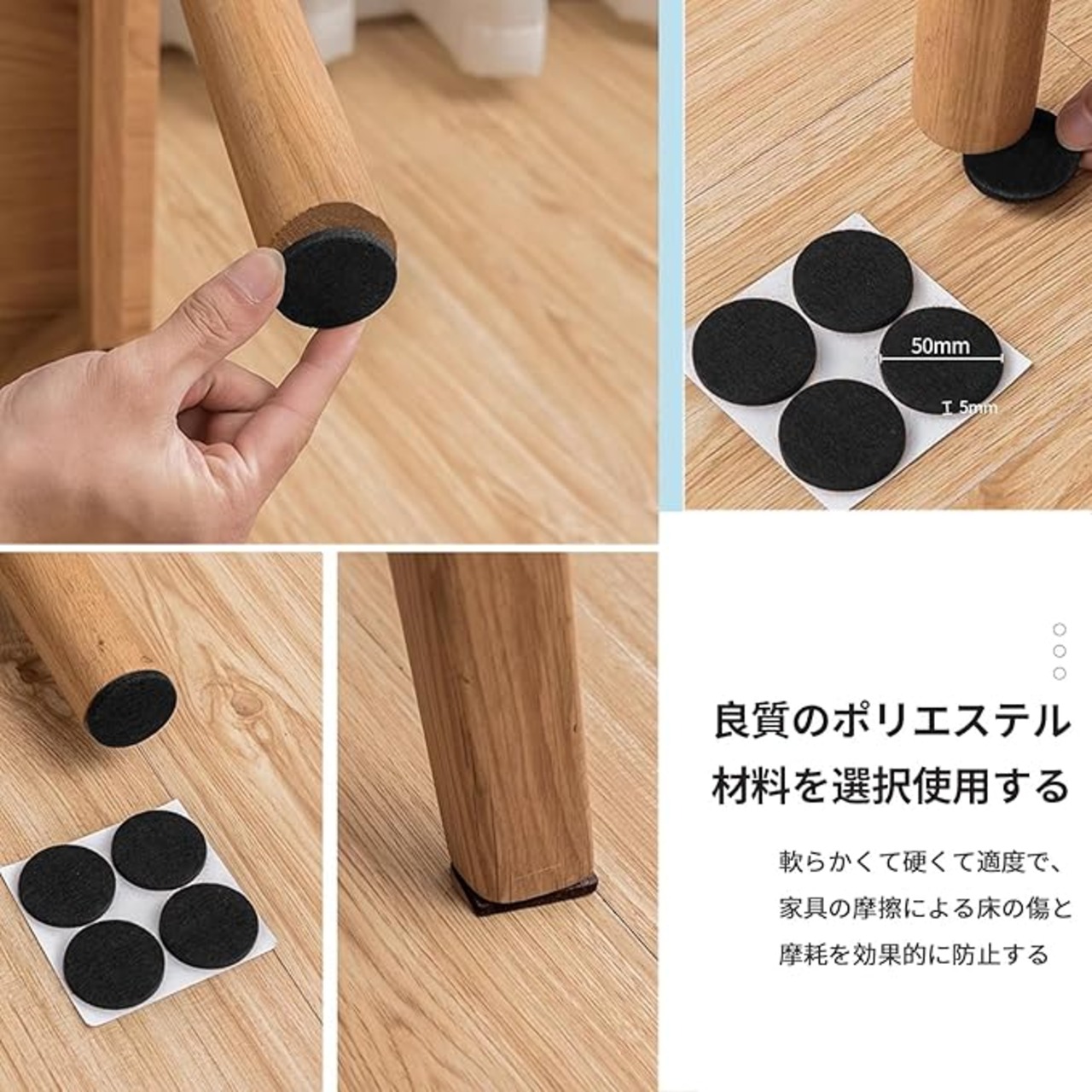 happykau 5mm厚め 家具 フェルト 24枚入り 50mm 家具保護パッド 家具 床 凹み防止 フェルト 傷防止 フェルトパッド 家具 椅子 強粘着 衝突防止 キズ防止パッド いす クッション フェルト 黒 (ブラック)