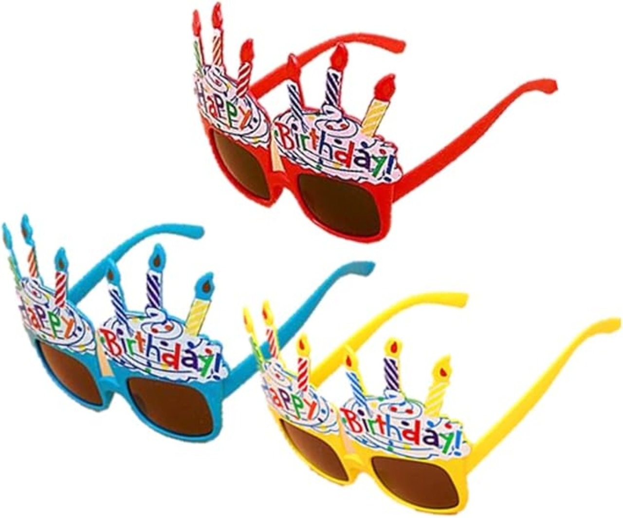 Happy Birthday 誕生日 メガネ サングラス 3 セット ♪ 青・黄色・赤【ロット生産により赤→ピンク、青→水色に変更になる場合があります。ご理解宜しくお願いいたします】