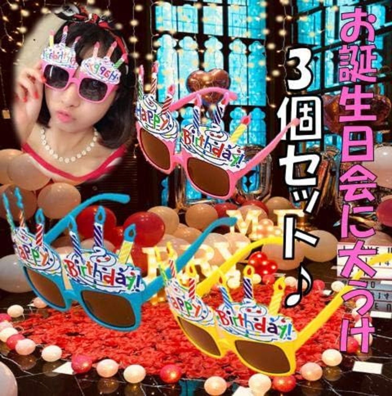 ハッピーバースデー サングラス 3色セット Happy Birthday 誕生日 バースデーパーティー おもしろ眼鏡