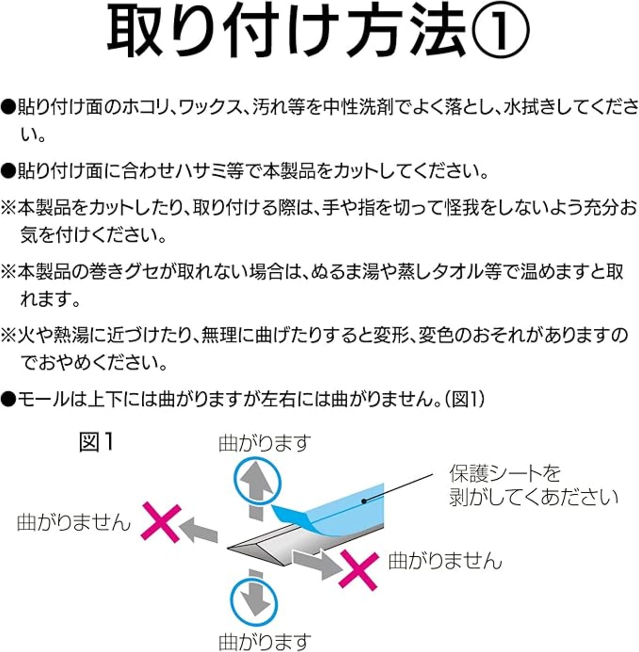 本製品を取り付ける場所が複雑な形状をしている場合は、お取り付けできない場合があります。車種によっては取り付け部が多少変色したり、 日焼けによる跡が残る場合があります。経年劣化により、メッキ面が変色、色あせする場合がございます。