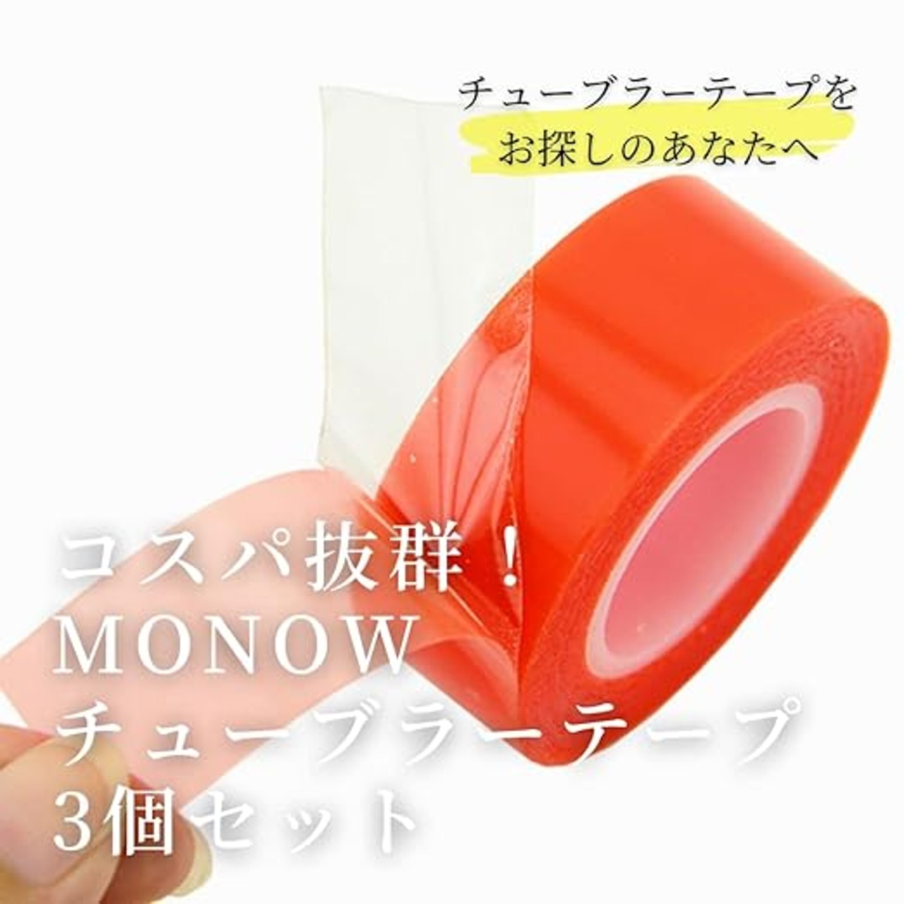 MONOW チューブラーテープ 幅19mm 長さ5m 3個セット リムテープ 両面テープ 耐熱 90℃ 強粘着
