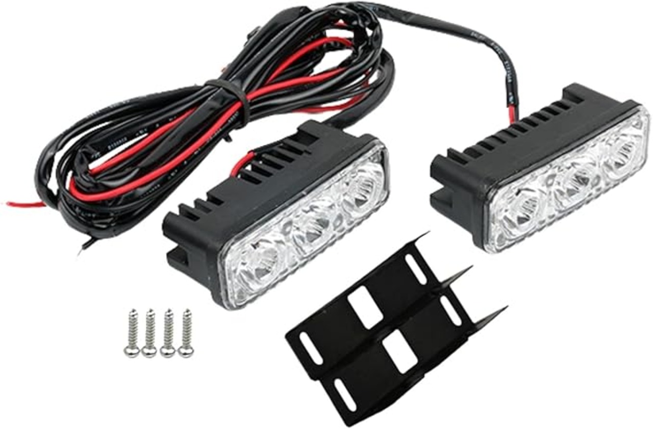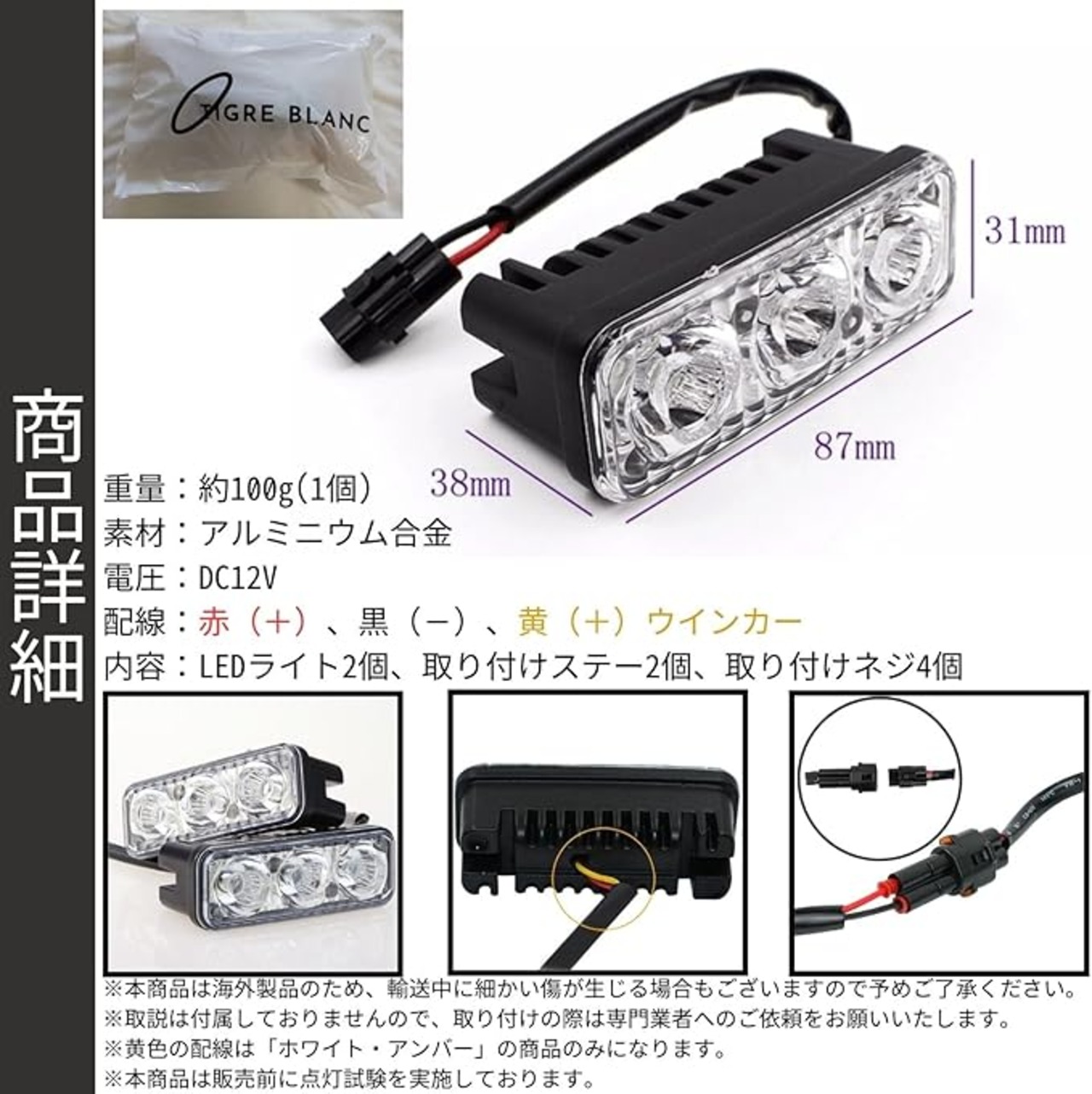ティーグルブラン 3連 LED デイライト フォグランプ バイク 車 高輝度 汎用 補助 ランプ 取付 ステー 付き 左右 2個 セット 白 ホワイト