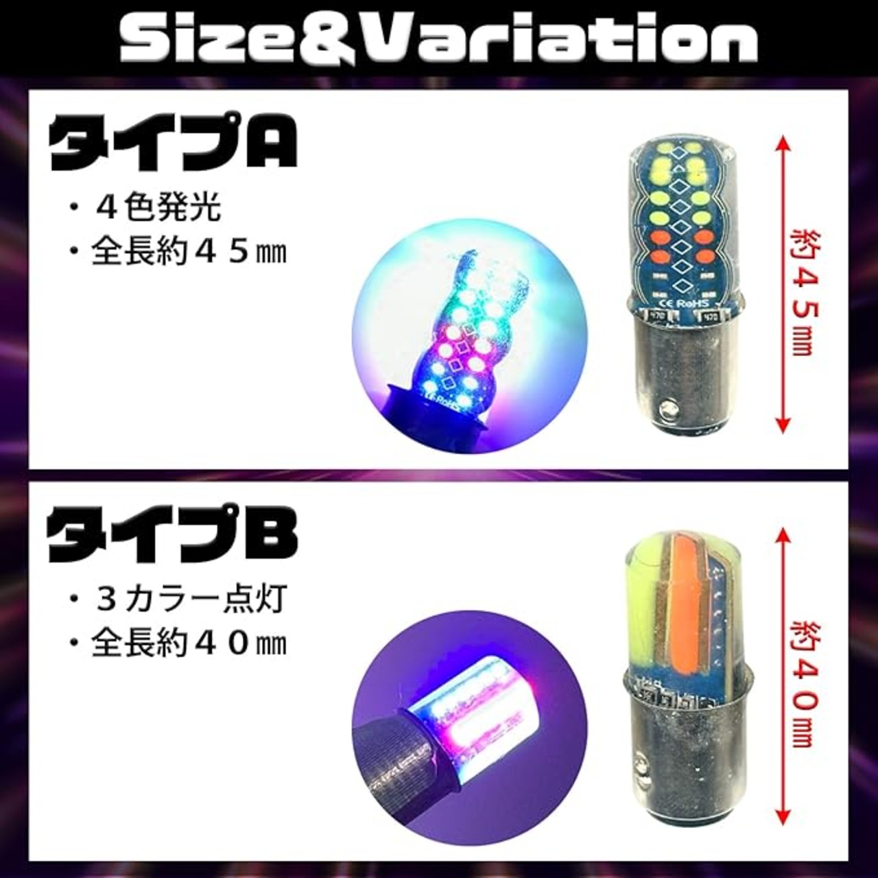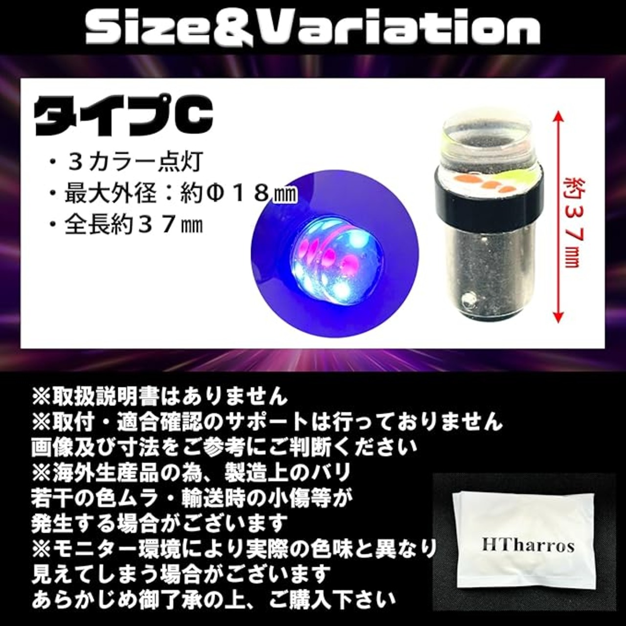 HTharros LED テールランプ ブレーキランプ 赤 青 緑 高輝度 COB 12V S25ダブル BAY15d口金用 汎用品 バイク用 タイプC
