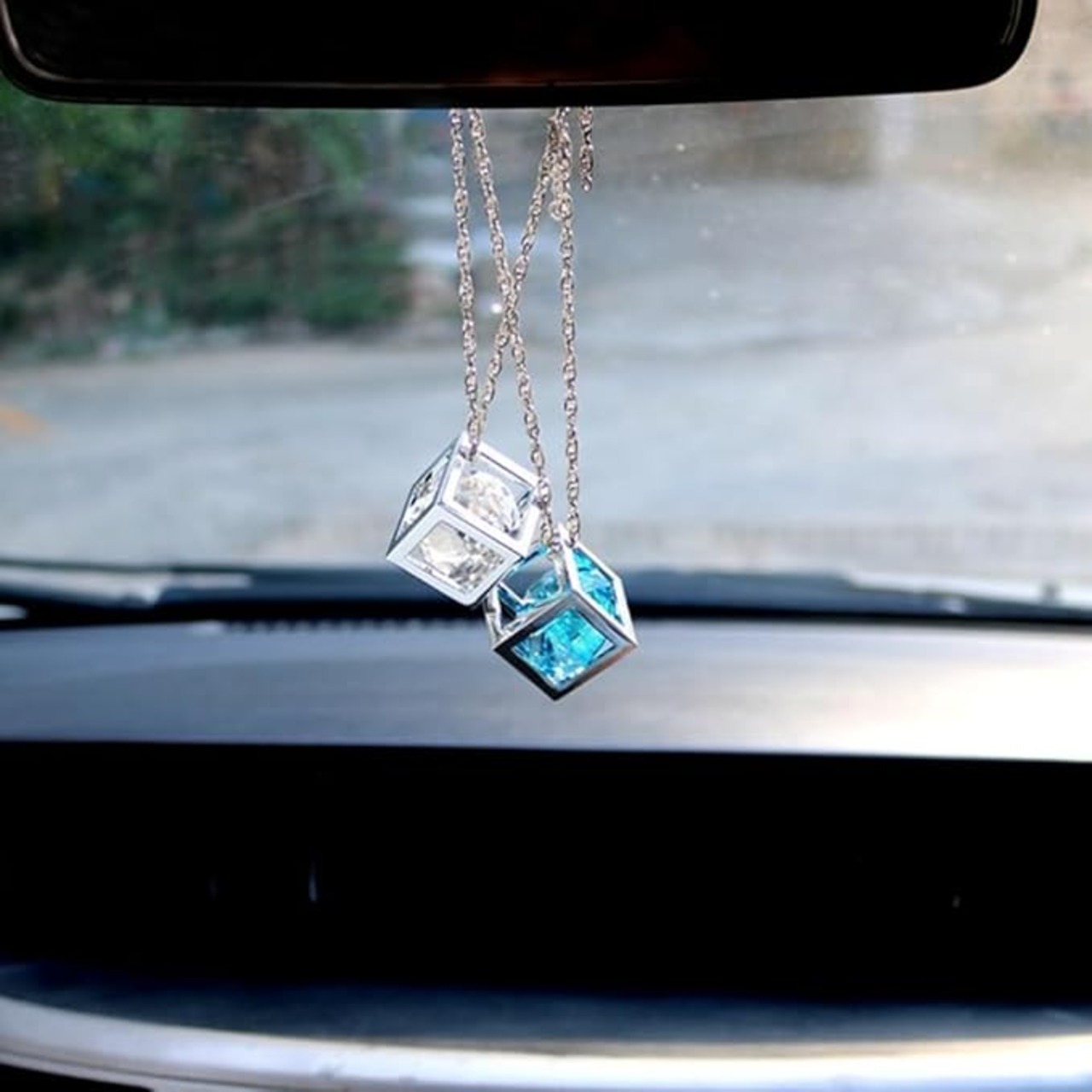 車内を飾るクリスタルキューブアクセサリー。 バックミラーに引っ掛けて垂らすだけで、たちまち車内がドレスアップされます。 クリスタルとメタルが光と輝きを集めます。