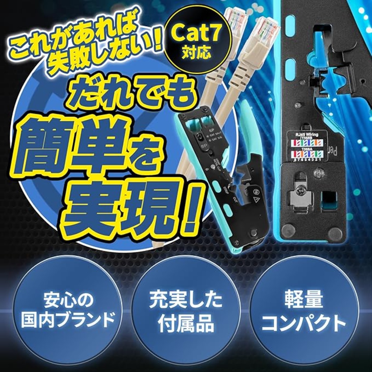 ・【各種コネクタ対応】 多くのコネクタに対応でできる圧着ペンチです。RJ45コネクタCAT5、CAT5E、CAT6、CAT6A、CAT7 貫通型 バックル型 RJ12 電話線コネクタ 6P6C、6P4C、6P2C RJ12