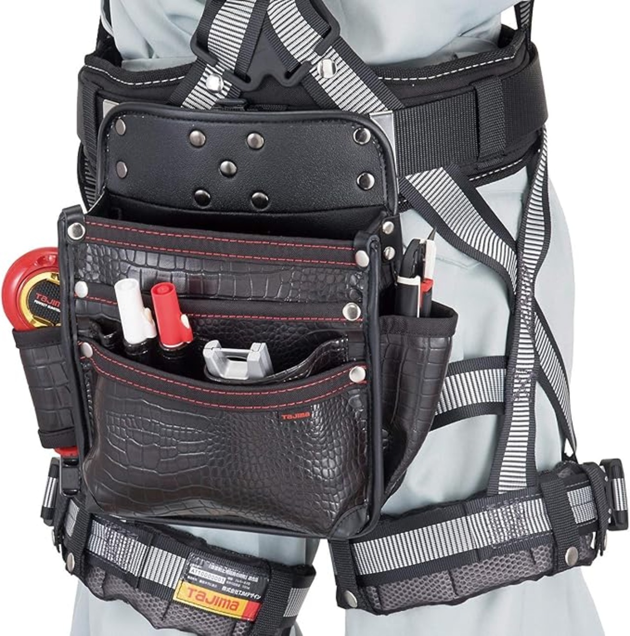 ●クロコ調の光沢と凹凸が独特の高級感と存在感を放ちます。●腰周りの組み換えが簡単な着脱式です。●ベルトを外さず途中から差せる後付式ホルダーを採用しています。●高強度で作業性の良いしなやかな合成皮革です。●幅広い職人さんに適したスタンダード形状腰袋はベルトからの浮きを防止するサイドクリップ付(裏面)です。●墨つぼやマーカー、釘打器を仕分ける専用ポケット付です。●擦ることの多い底部を耐摩耗性のあるターポリンで補強しました。●必ず許容総重量以内でご使用ください。●取扱い説明書をよく読んでからご使用ください。●製品仕様は予告なく変更する場合がございます。●予めご了承ください。