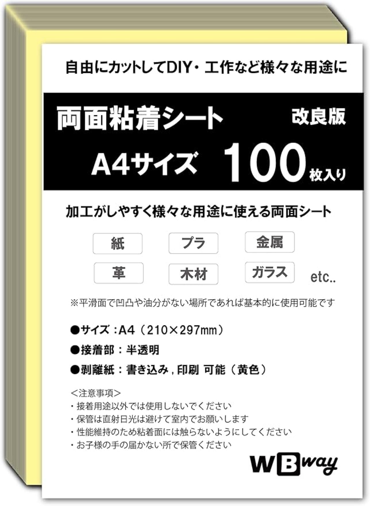 WBway 両面粘着シート A4 【100枚セット】 薄型 強粘着 シート状 サイズ297 210mm 両面接着シート 両面テープ シート 自作 多用途 半透明 シートタイプ (100枚入り)