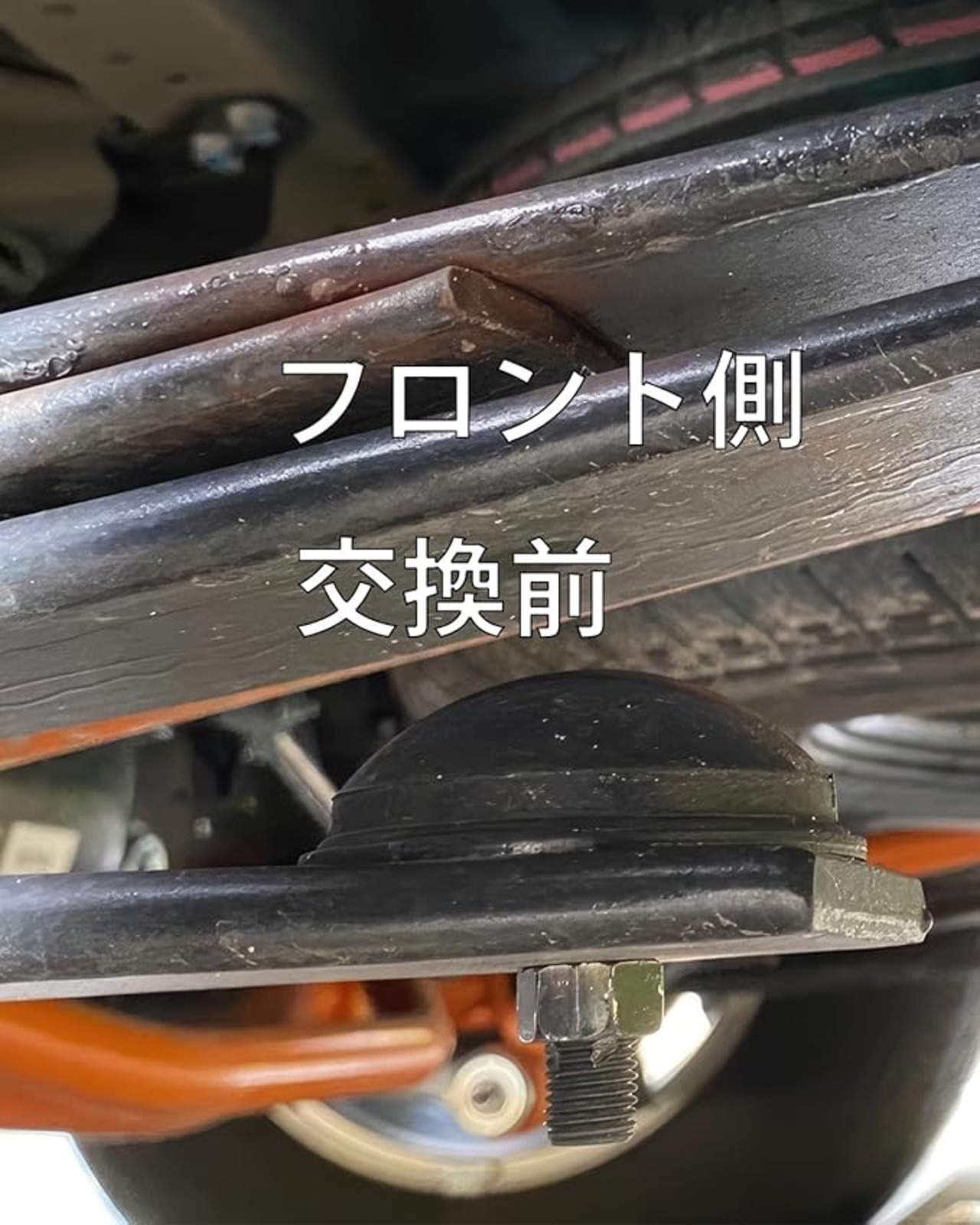 車高が5㎜下がって、突き上げ感が緩和される、不必要な衝撃がこない、乗り心地を改善します。