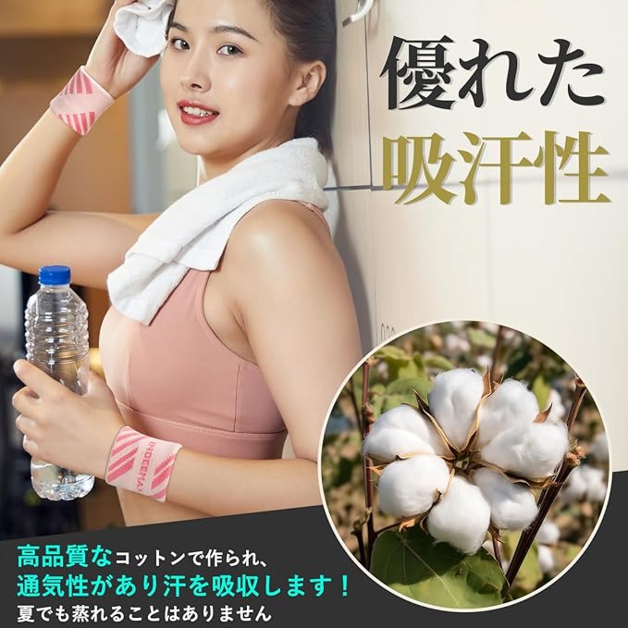 【100%コットン素材】 INDEEMAXリストバンドは100%高品質のコットン素材で作られており、ソフトタッチで肌に優しく、伸縮性に優れ、小さくて軽い(わずか16g)。