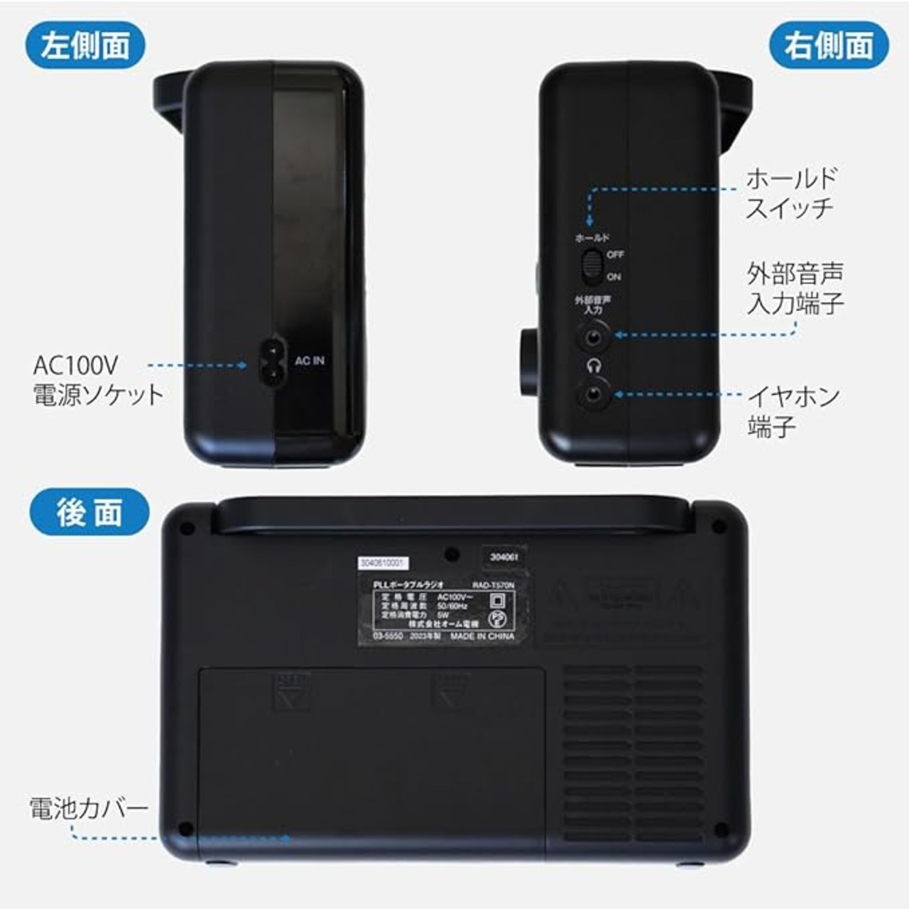 ■ 電源:AC100V 50/60Hz、DC6V(単1形乾電池 4本 別売)