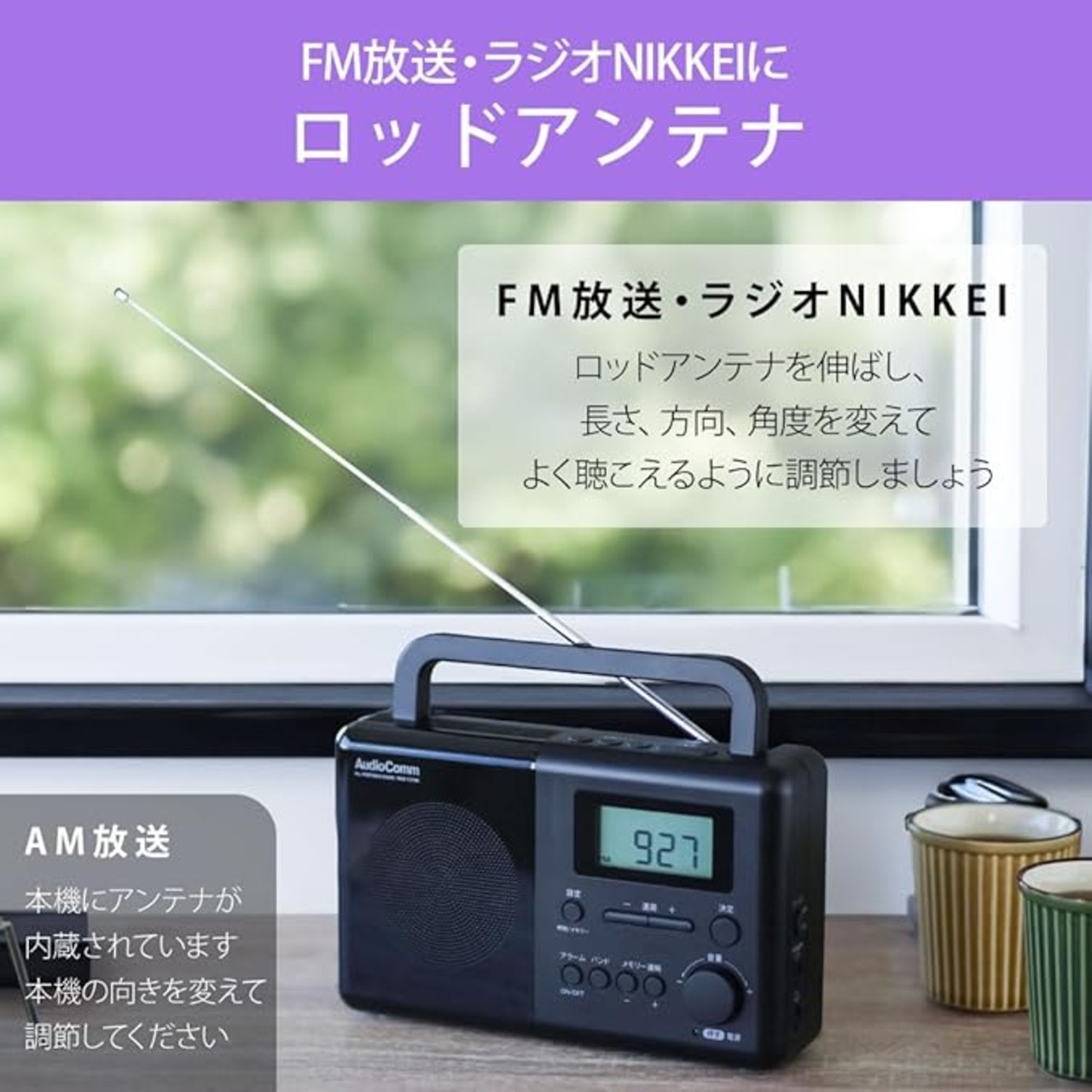 ■ アンテナ:AM…内蔵フェライトバーアンテナ、FM・ラジオNIKKEI…ロッドアンテナ