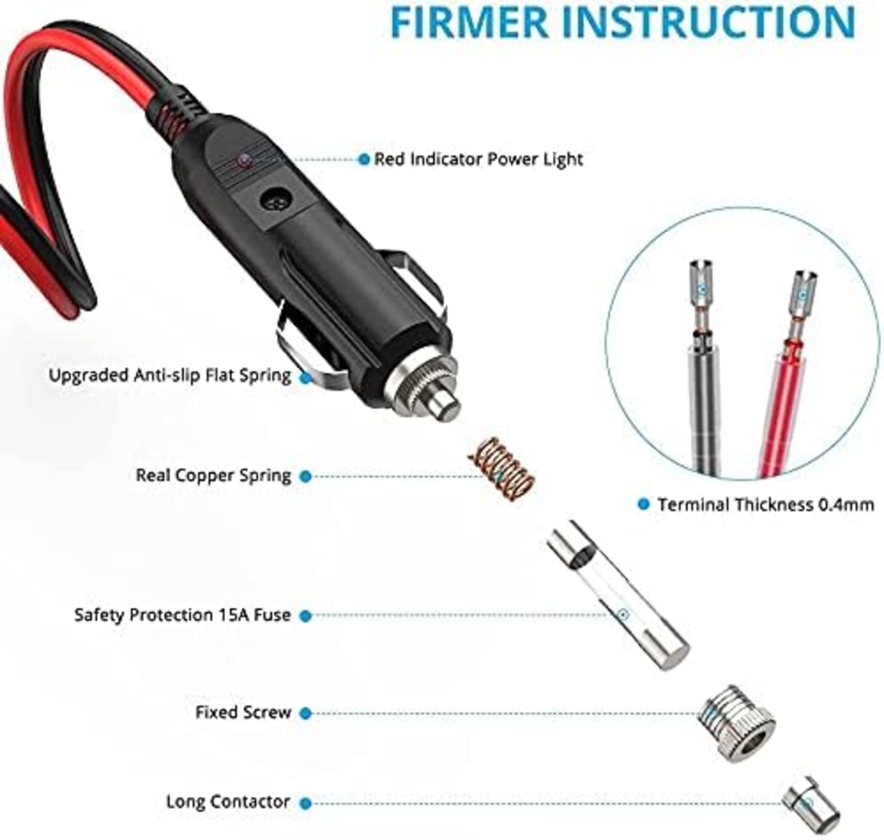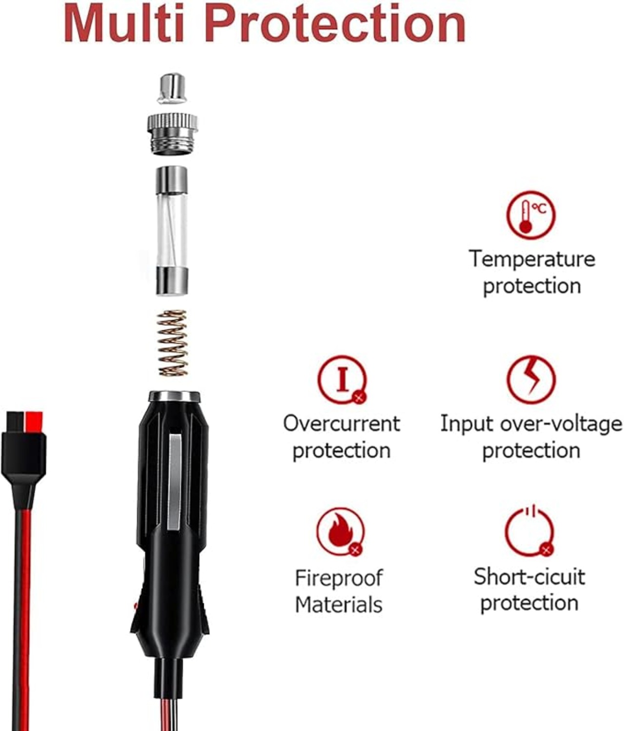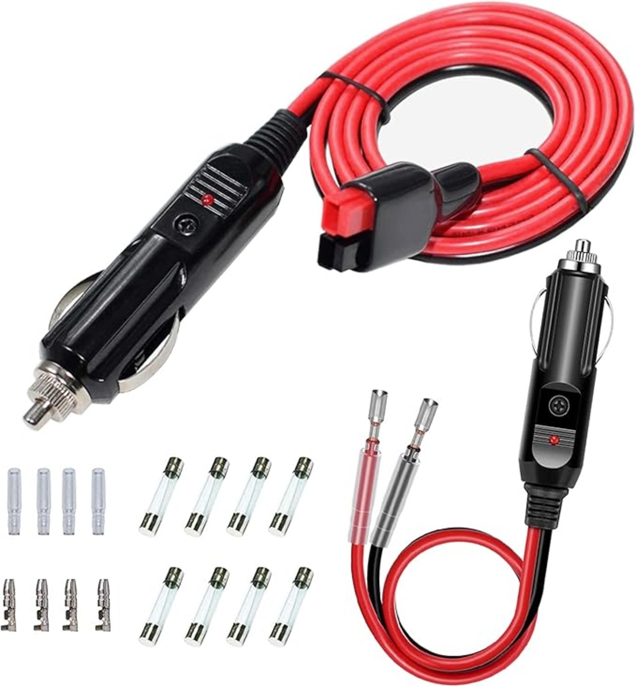 ★ LEDインジケーター:LEDインジケーターを搭載し、接続状態を簡単に確認でき、暗闇や夜間でもすばやく簡単に使用できます。内蔵ヒューズ:過負荷保護用の10A内蔵ヒューズ付きシガレットライタープラグが含まれています。頑丈な16ゲージの銅線リード、プラス用の赤い線、マイナス用の黒い線で製造されています。