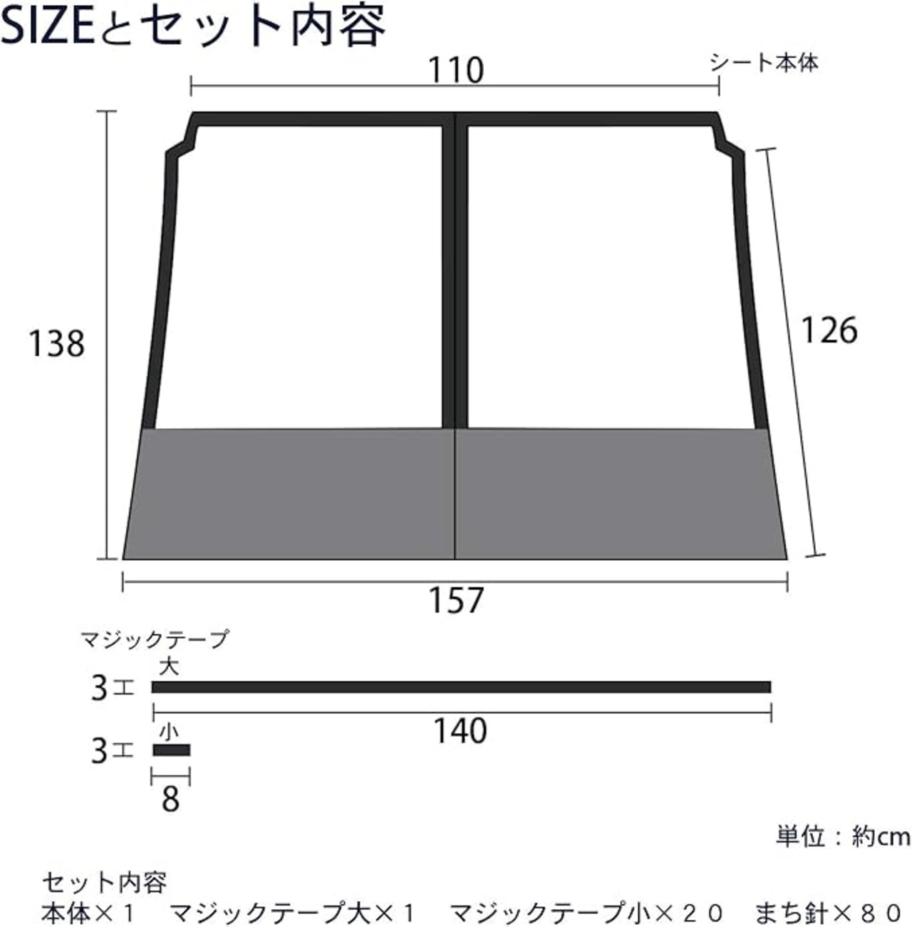 【サイズ】画像参照【素材】ポリエステル、PVC【仕様】軽自動車、5ナンバーサイズ用、車種により取り付けできない場合があります。