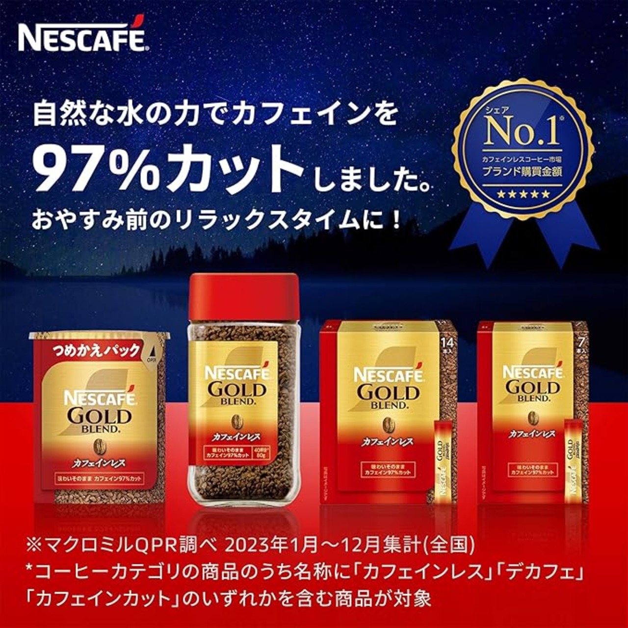 「ゴールドブレンド」ならではの上質な香りとマイルドな味わいはそのままに、自然の水だけを使用する独自の製法でカフェインを97%カット。