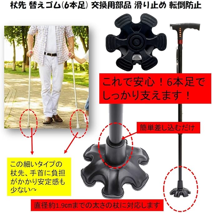 杖先 替えゴム 6本足 杖先ゴム 自立 安定 交換用部品 滑り止め 転倒防止 杖 つえ ステッキ 交換 ゴム