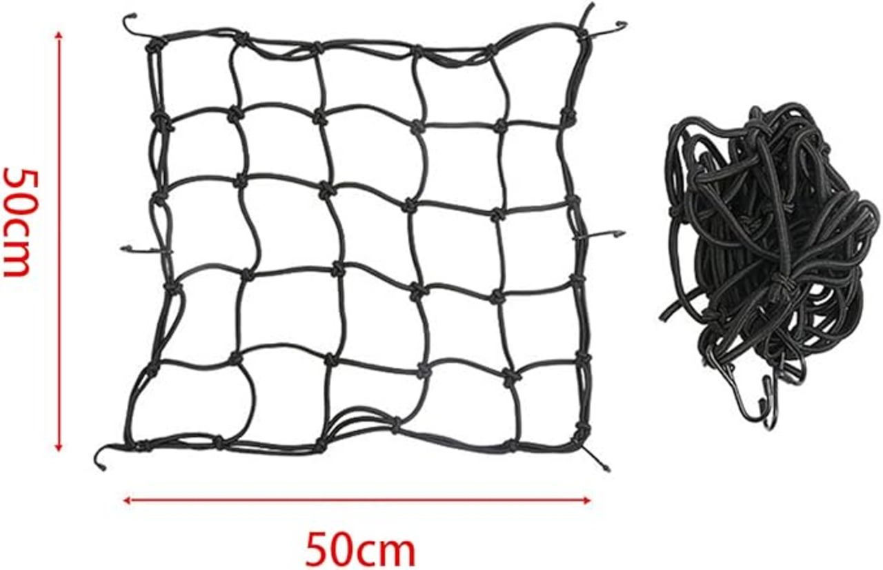 ZeniMart バイクネット ツーリングネット 50cmX50cm カーゴネット ラゲッジネット 伸縮性 荷物固定 簡単な取り扱い 荷崩れ防止 荷物落下防止 フック付き ブラック