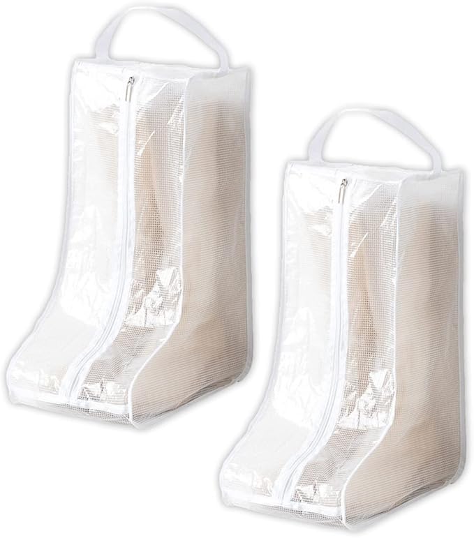 Rimikuru シューズケース ブーツ 収納 袋 ロング ショート カバー 靴 2足セット 透明 (透明ホワイト・ロング)
