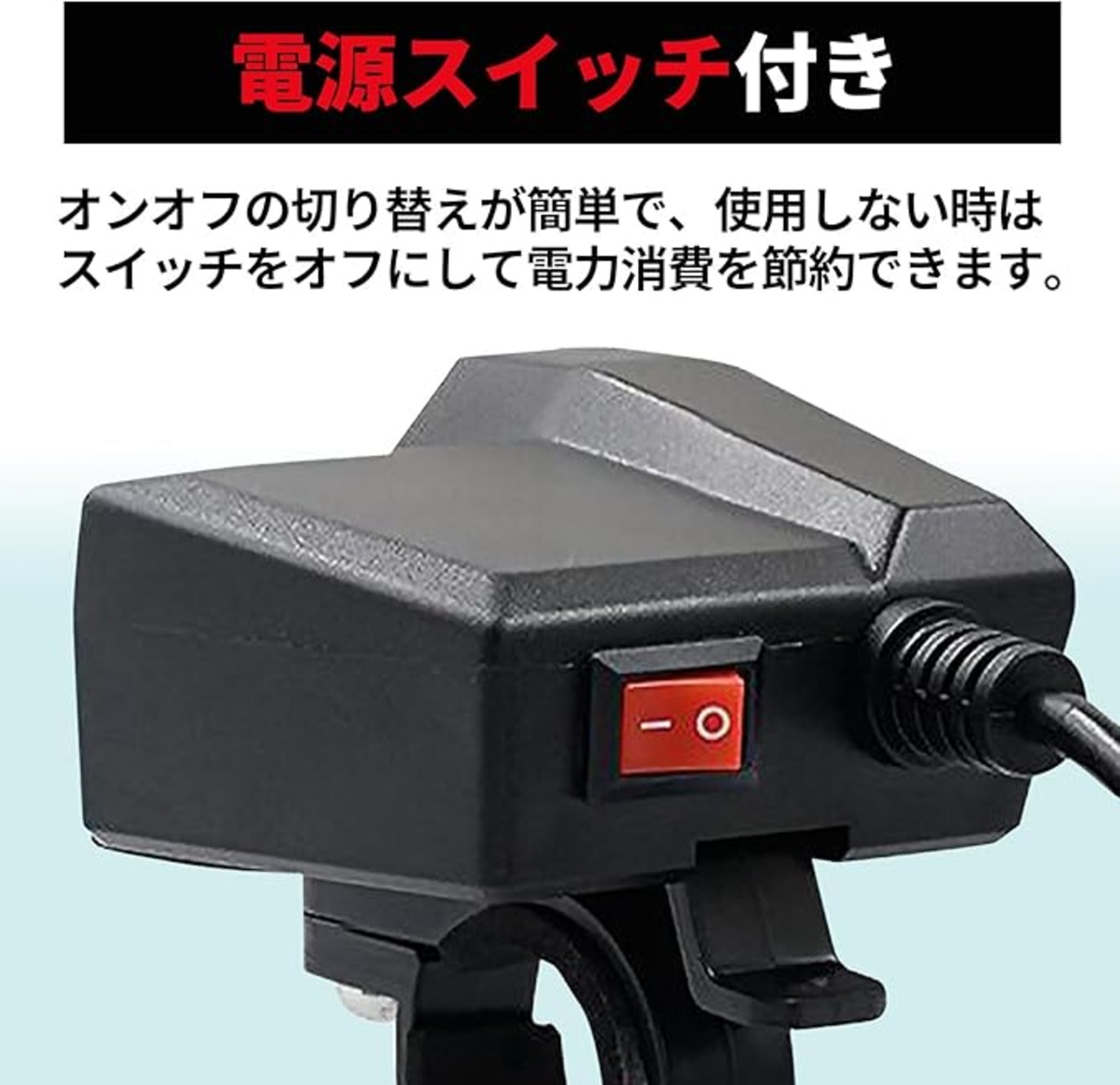 バイク用デュアルUSB+電圧計(シガーソケット付) 【デュアルUSB充電ポート】 合計出力3.4Aで、携帯電話、タブレット、ナビゲーション、GPSなどの2つの電子機器に同時に効率的に電力供給可能。 【防水・防塵カバー搭載】 環境にやさしい素材を使用した防水・防塵設計で、雨や埃から製品を守り、耐久性を向上させます。 【リアルタイム電圧監視】 搭載された電圧計がバッテリー電圧をリアルタイムで監視。低すぎる電圧や高すぎる電圧から発生する隠れた危険を防ぎます。 【車種選ばない汎用性】 DC10~24Vで多様なバイクに適応。 【独立したスイッチ】 電圧計とUSB充電ポートを同時に制御可能。オンオフを切り替えて電力消費を抑制できます。 【2通りの取り付け方法】 ハンドルバー取り付け/バックミラー取り付けが可能。自分の好みに合わせて選択できます。 【長い配線】 バッテリーに直接取り付け可能で、バイクのデザインに合わせた柔軟な設置が可能。配線手順も簡単。 【便利なアクセサリー】 ハンドルバー取付用ブラケット、バックミラー取付用ブラケット、滑り止めガスケット、長ネジ、小ネジ、固定用ナットが付属。取り付けが簡単です。