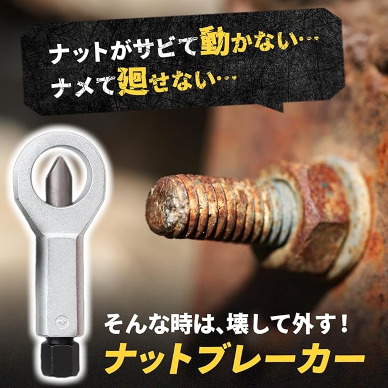 ✅「高性能ナットブレーカー - 頑固なナットの分割・破壊に最適」 頑固なナットの分割や破壊に最適な工具です。ボルト・ナットの取り外しが簡単に行えます。ステンレス製で錆びにくく、耐久性に優れています。駆動工具としても使用可能で、ナットリムーバーツールやボルトカッターとしても活躍します。ツールセットとして持っておくと便利です