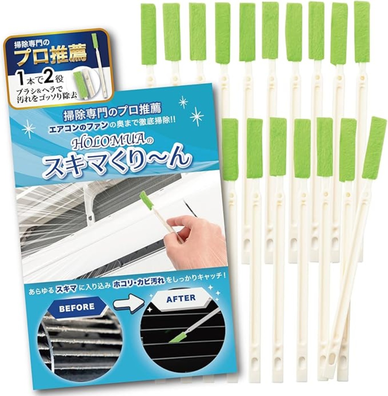 【掃除専門のプロも推薦】 エアコン 掃除 ブラシ (国内検査済) 隙間ブラシ 隙間掃除 20本入【 ファン の隙間もこれ1本で掃除できる/ヘラ付】 掃除道具 水筒 トイレ掃除 HOLOMUA