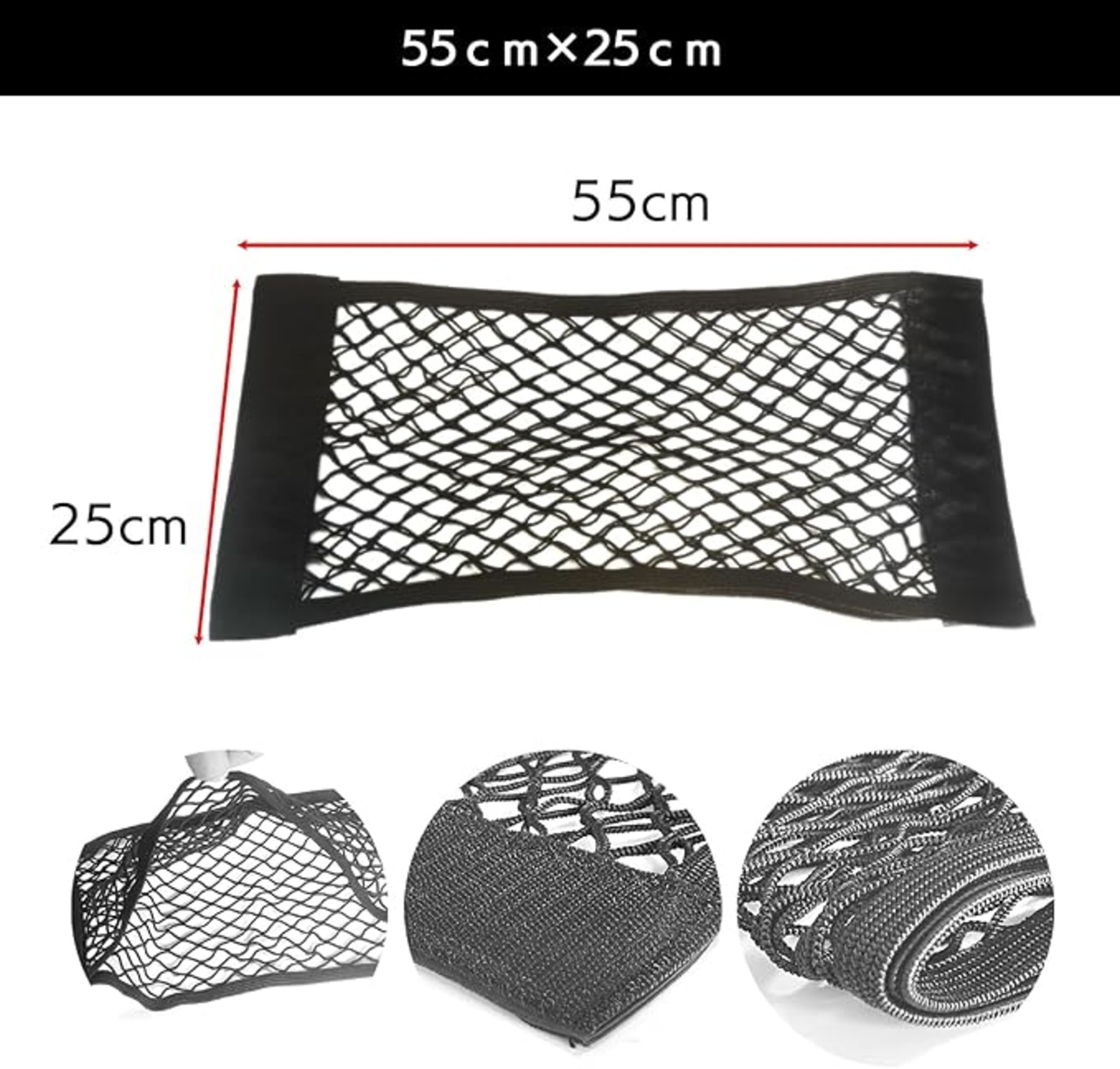 セット内容は収納ポケット二個入りで、サイズは55センチ 25センチと40センチ 25センチのコンパクトな設計。ブラックのシンプルなカラーで、どんな車内にも馴染みやすく、汎用的に使用できます。付属の強力マジックテープを使用し、シートやラゲッジスペースなどに簡単に取り付け可能。