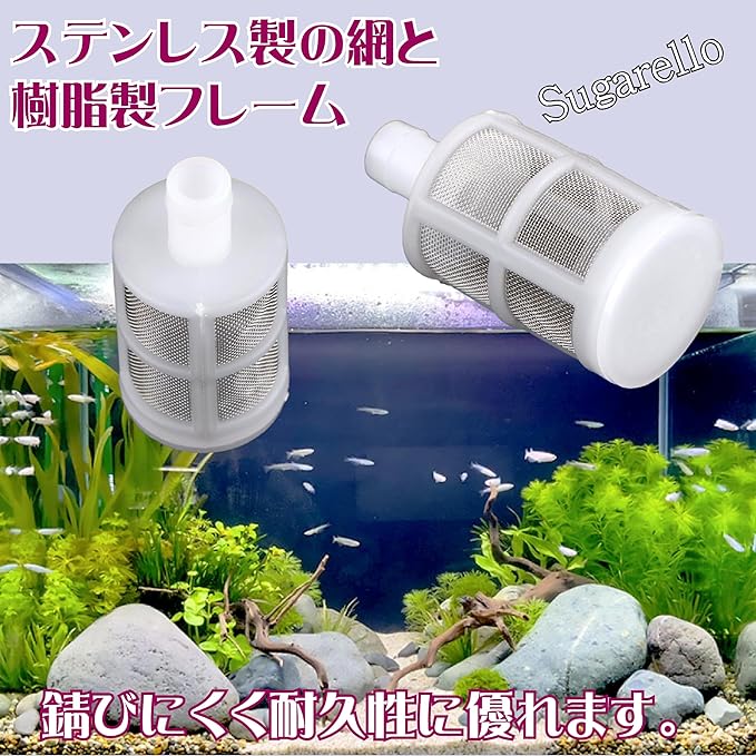 水中に自然発生する藻などを取り除きますので、水槽内をいつもきれいな環境に保ちます。電動式の噴霧器のタンク内にも取り付けられますので、ノズルの詰まりを防ぎスムーズな噴霧作業ができます。