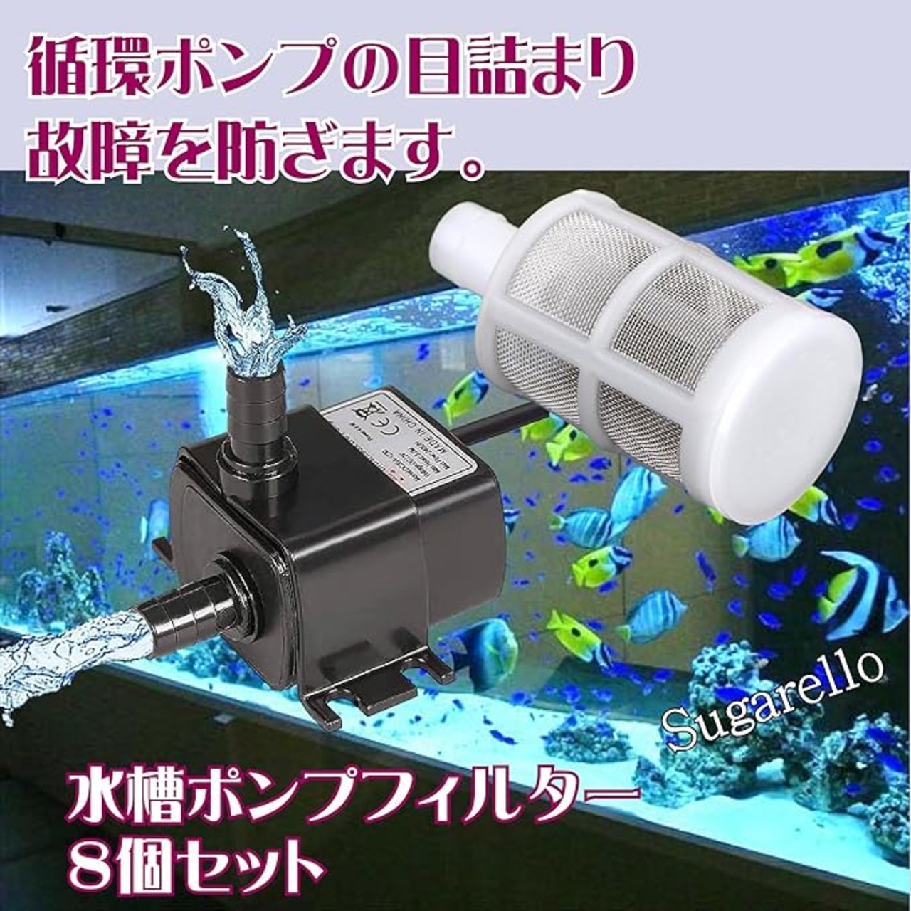 水槽用の循環ポンプに取り付けるフィルターです。細かなゴミなどを取り除き、ポンプの故障を防ぎます。お得な8個セット。
