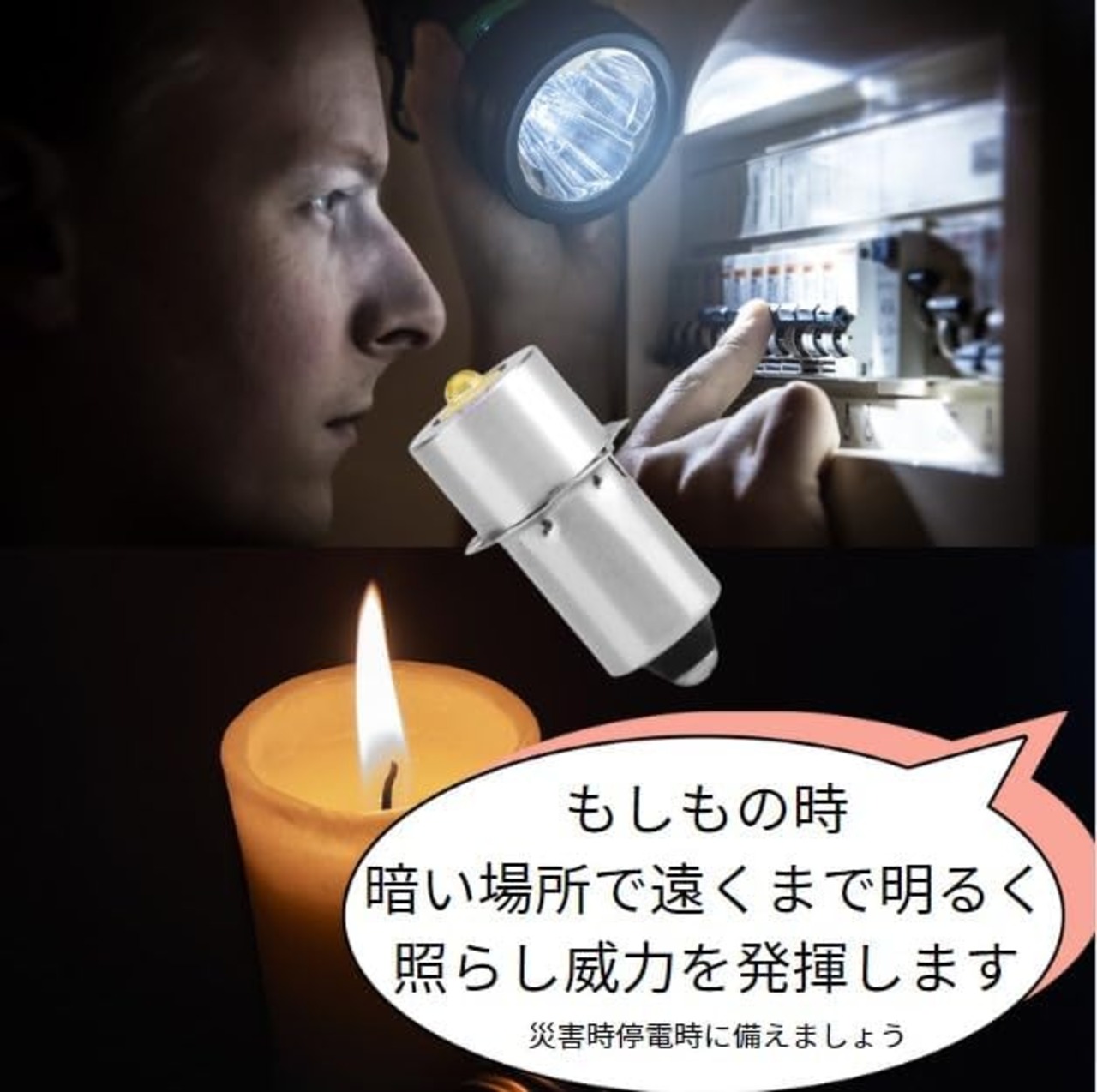 ☆このLED交換懐中電灯電球はP13.5S形状の電球(バルブ)交換する事で簡単お手軽、迅速かつ効率的なLED仕様の懐中電灯にアップグレード!夜間停電時やもしもの時にもさらに明るくさらに遠くまで照らし出す事が可能となります。