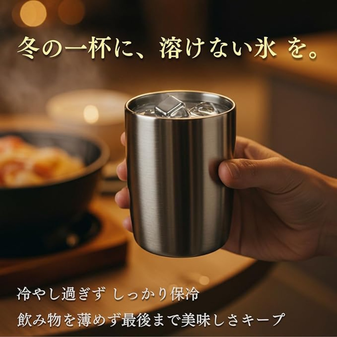 一般的なアイスキューブと一線を画す圧倒的品質。ビールやコーヒーの風味そのまま、冷たさ長持ち。高品質素材採用で第三者機関の安全試験クリア