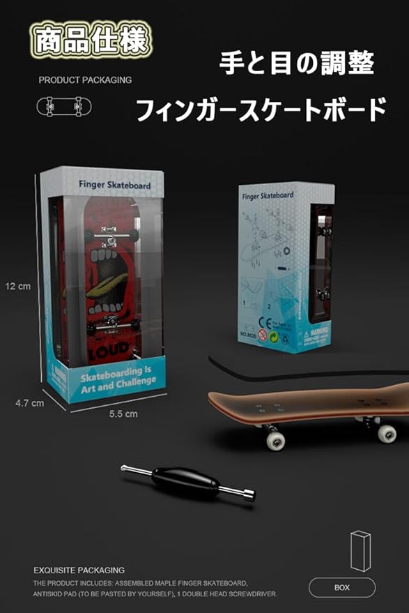 【耐久性メープルデッキ】高品質のベアリングを使用で、回りやすく、耐磨耗に優れ、安定性を持っている。滑らなくてボードに乗ることができます。大人でも子供でも使えます。持ち運びが簡単で便利です。流暢な体験を提供し、効果的に摩擦を減らし、指スケートボードの寿命を延ばします。