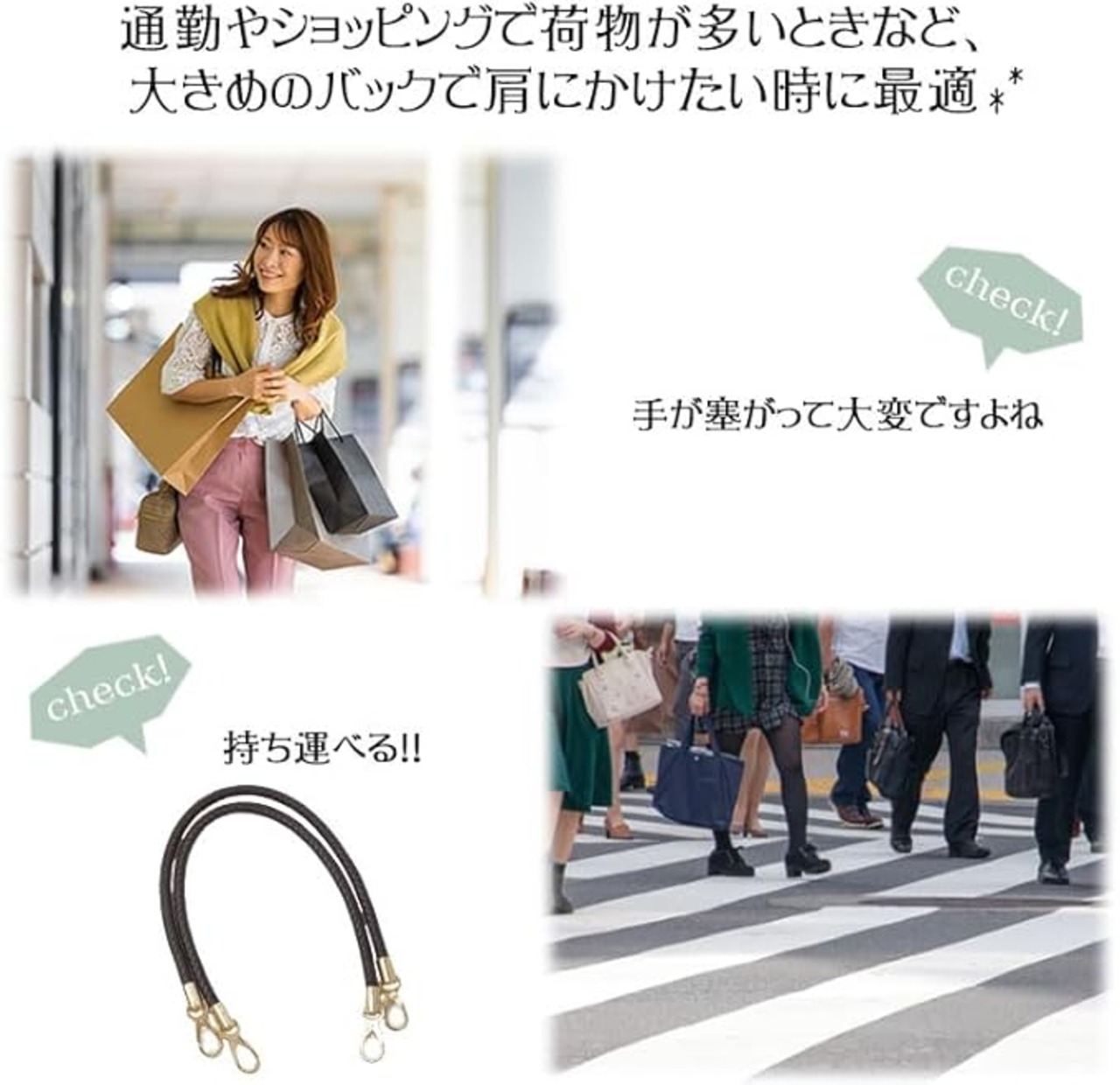 荷物が多いときなど、大きめのバックを肩にかけたい時に最適です。