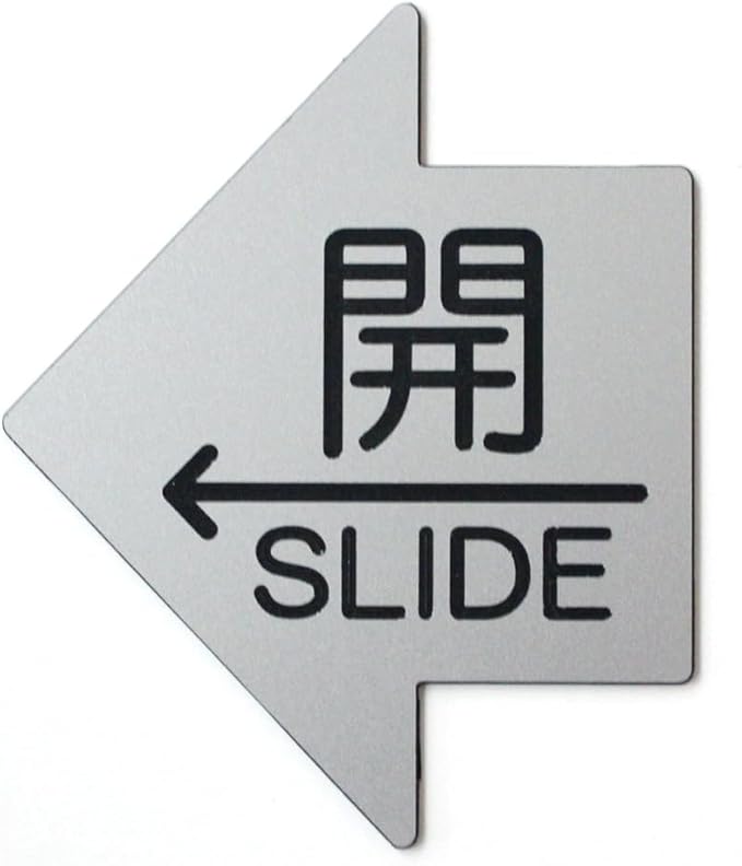 MKE 矢印のカタチ 引き戸 プレート 左方向 ドアプレート 刻印 シール付 (開/左/シルバー/大)