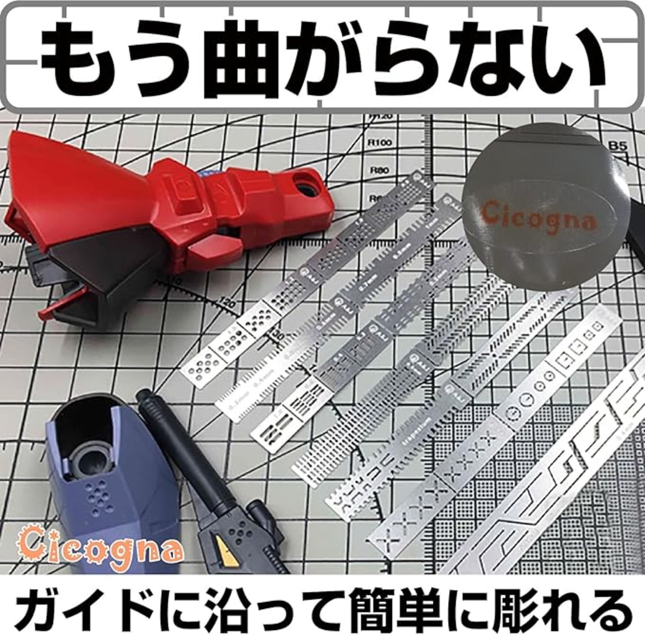 [Cicogna] スジボリガイド 筋彫り ガイド エッチングガイド テンプレート 定規 プラモデル 模型 ガンプラ ディテール AJ (タイプA)