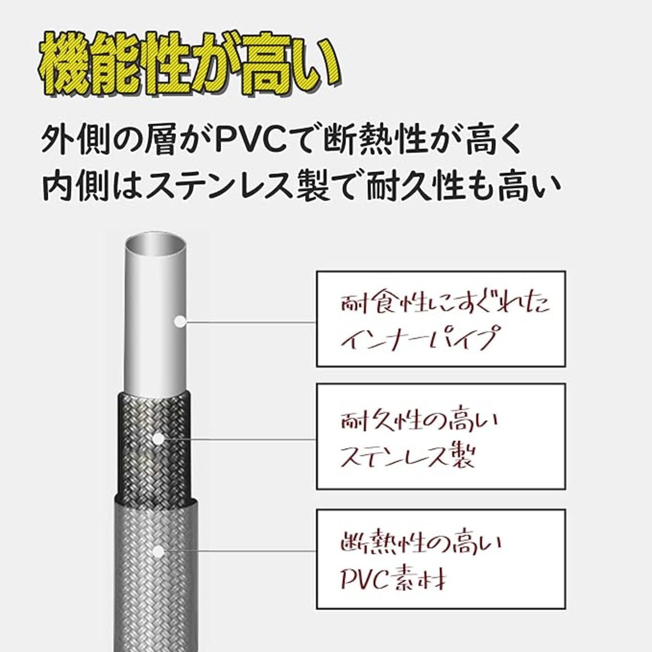 機能性が高い:このブレーキホースは外側の層がPVCとなっており、断熱機能が優れています。内側は耐摩耗性に優れたステンレス製ですので、耐久性も高いです。