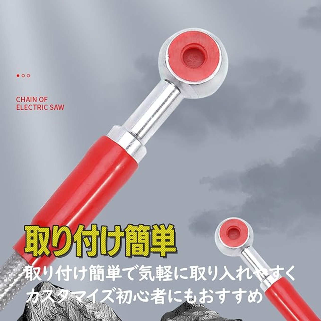取り付け簡単で使用しやすい:約120cmのブレーキホースで、取り付けも簡単ですので、気軽に取り入れやすいです。カスタマイズ初心者の方でも取り付けしやすいです。