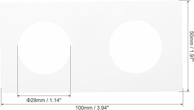 カラー: ホワイト; 材質: 紙; コインサイズ: 29 mm; サイズ: 50 x 100 mm(L*W); パッキングリスト: 50 x コインディスプレイホルダー