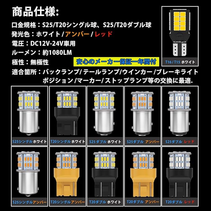 応用:バックランプ ウィンカー テールランプ ブレーキライト ポジション マーカー ス トップランプ等