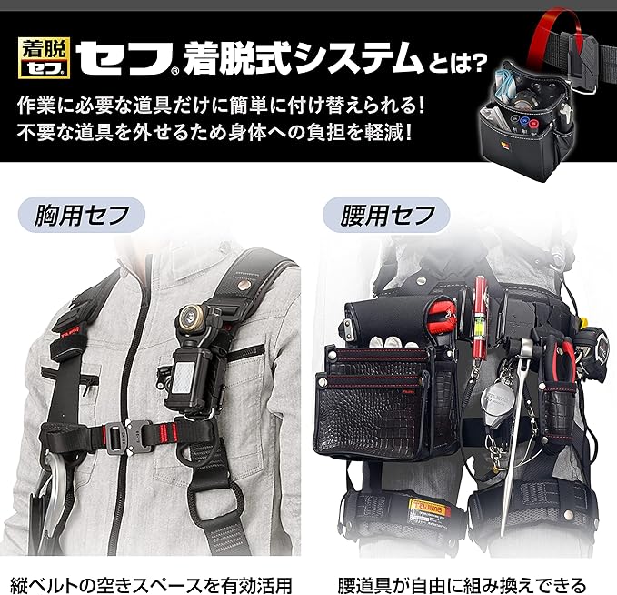 タジマ セフシステム 着脱式腰袋 2段中 水気に強い高密度ナイロン SFKBN-2M 着脱楽々 ベルトに後から装着可能 腰道具の組み換えが簡単 使う道具だけを選んで装着 腰の負担軽減 工具の落下防止