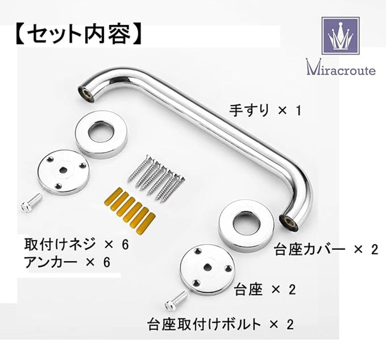 【サイズ】長さ300mm、パイプ径25mm 【重量】280g 【付属品】ネジ(6本)、アンカー(6個)/手すり1本に対し。