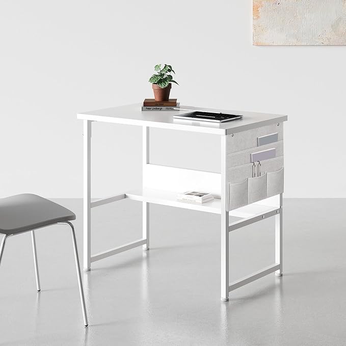YeTom デスク パソコンデスク 机 pcデスク 幅80cm 勉強机 収納袋付き学習机 オフィスデスク 作業机 モニターアーム取付対応 組立簡単 白い