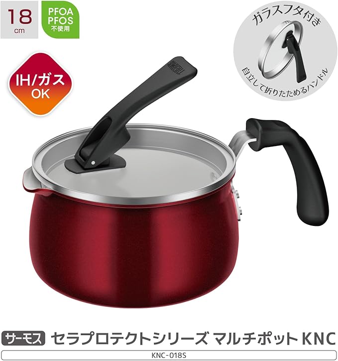 サーモス セラプロテクトシリーズ マルチポットKNC IH・ガス火対応 ディープレッド 1台7役 煮る 茹でる 焼く 揚げる 炒める 炊く 沸かす KNC-018S DR