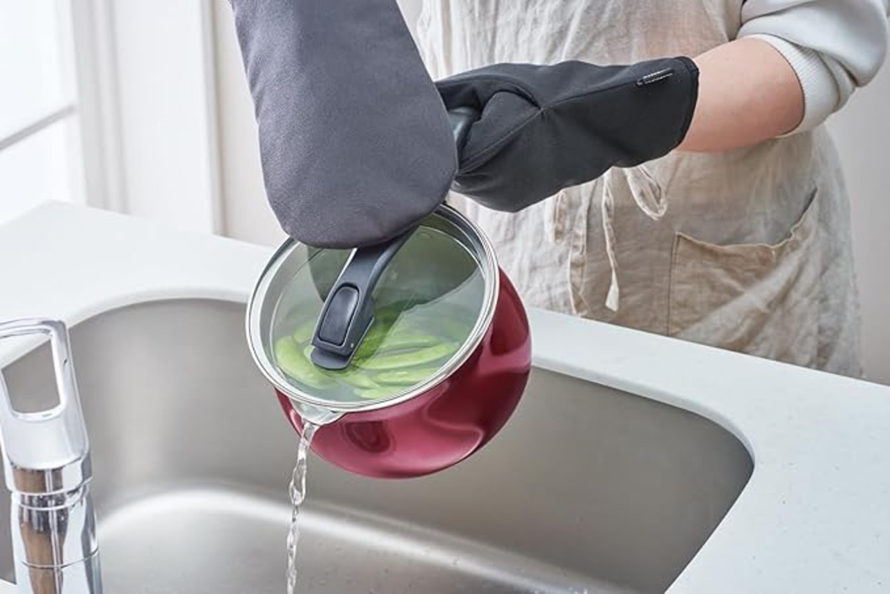 ●ガラスフタをしたまま湯切りができる、湯切り穴付き